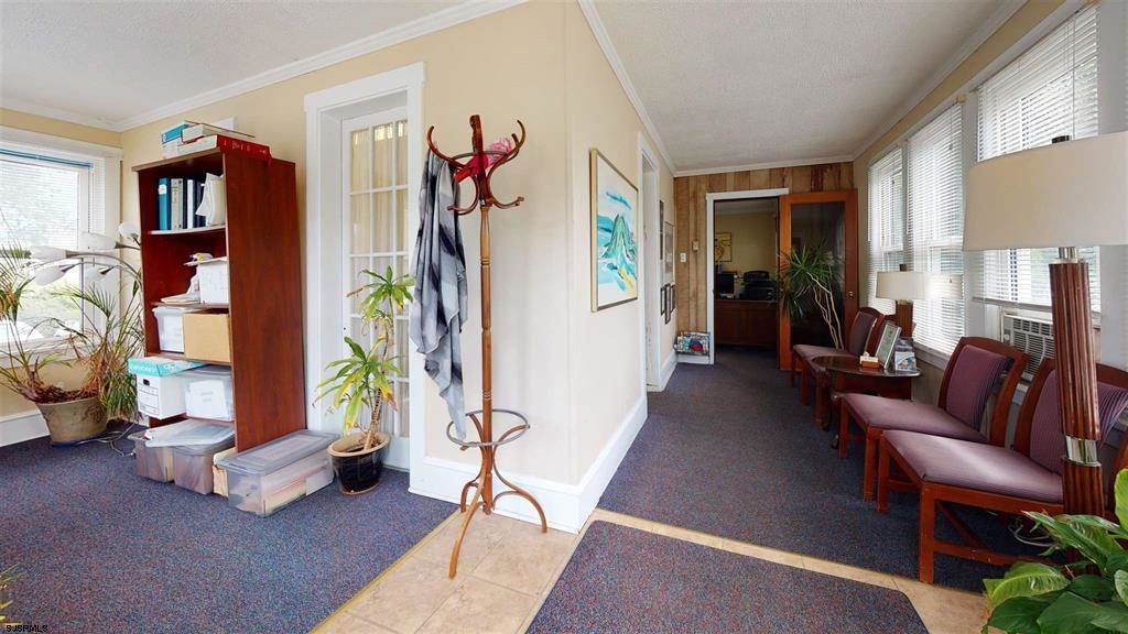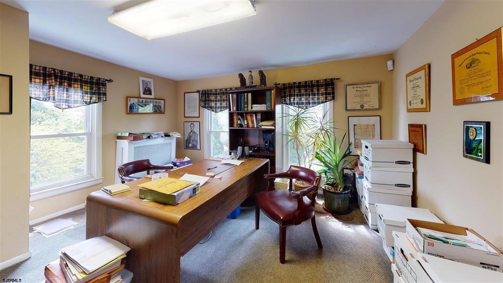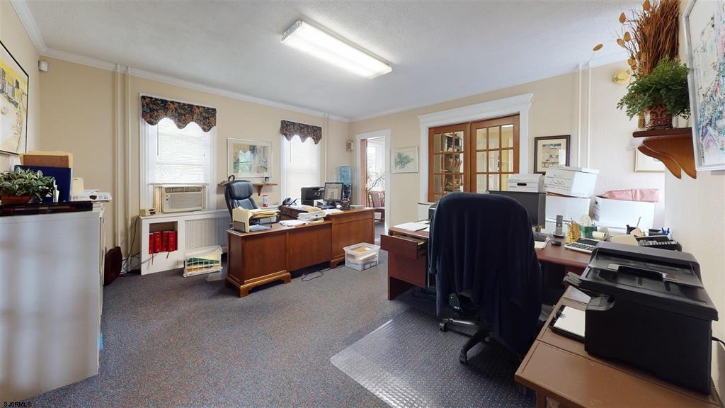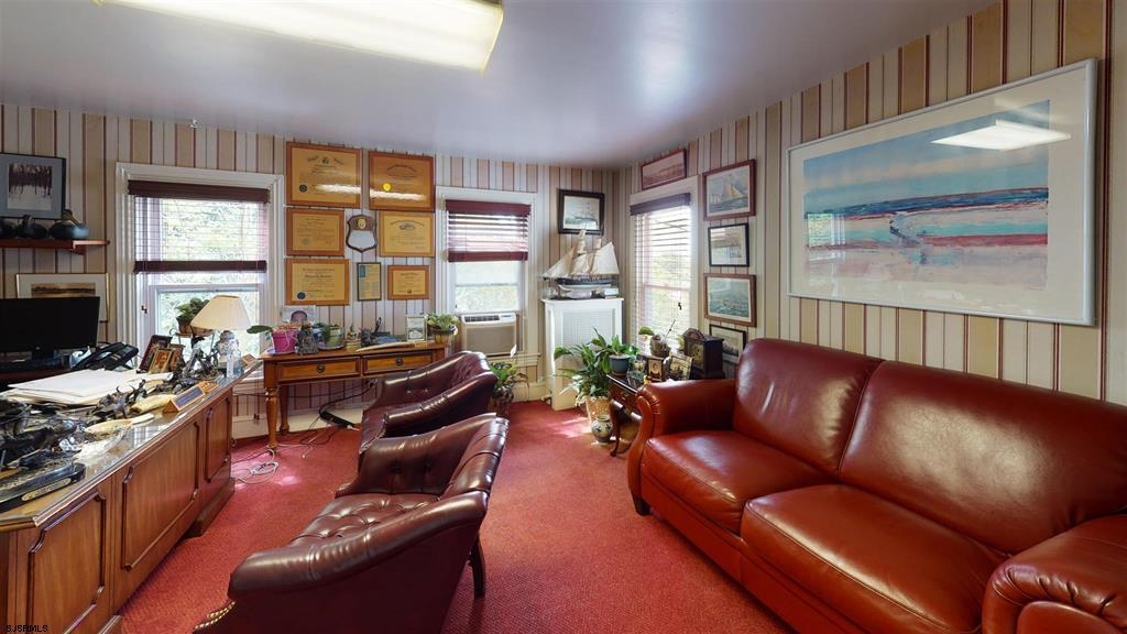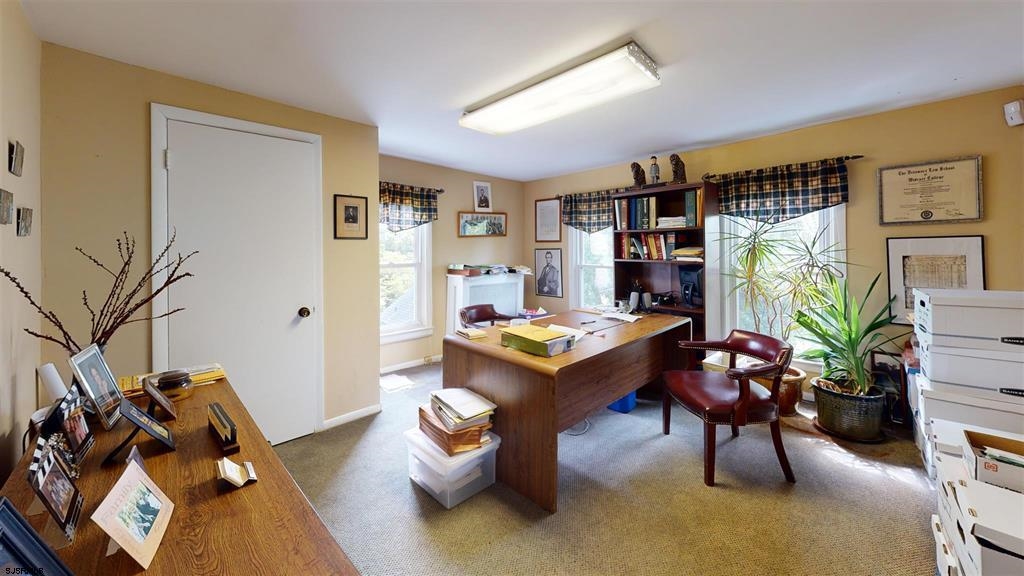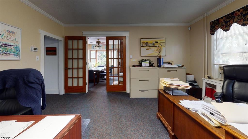 Double lot, zoned R-10, with 12 + parking spots. The building is currently used as office space (non conforming use) but could be converted back to a home with the addition of a kitchen, currently there is a kitchenette. First floor consists of a bright and welcoming sunporch, a large office with classic French doors, and oak inlay flooring, and a half bath. Perfect opportunity to rent out office space to assist with owner income. The second office area is large enough for multiple desk and or work space, and there is a room that houses a conference table that over looks the marsh with a water view with built in shelving. There are 3 spacious offices upstairs and a finished walk up attic with a full bath. There is also a full unfinished basement used for storage and is dry. A detached finished garage with electric & plumbing. The property sits on a double lot with one side all parking, and the other a pretty manicured grass area, landscaped with flowers and trees.